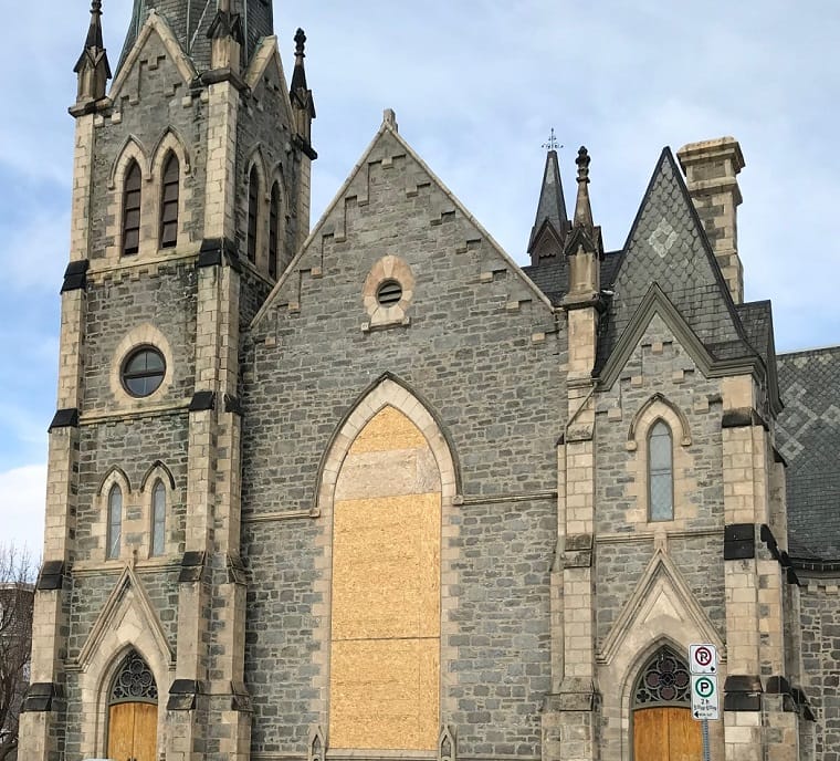 Just before Christmas, it was removed to be restored over the winter. Historic stained glass windows such as this, are expensive to repair and, though our fundraising efforts are incomplete, we had reached a point where we had very little choice but to move forward. This window, and our building, is an important part of the heritage of Cambridge.