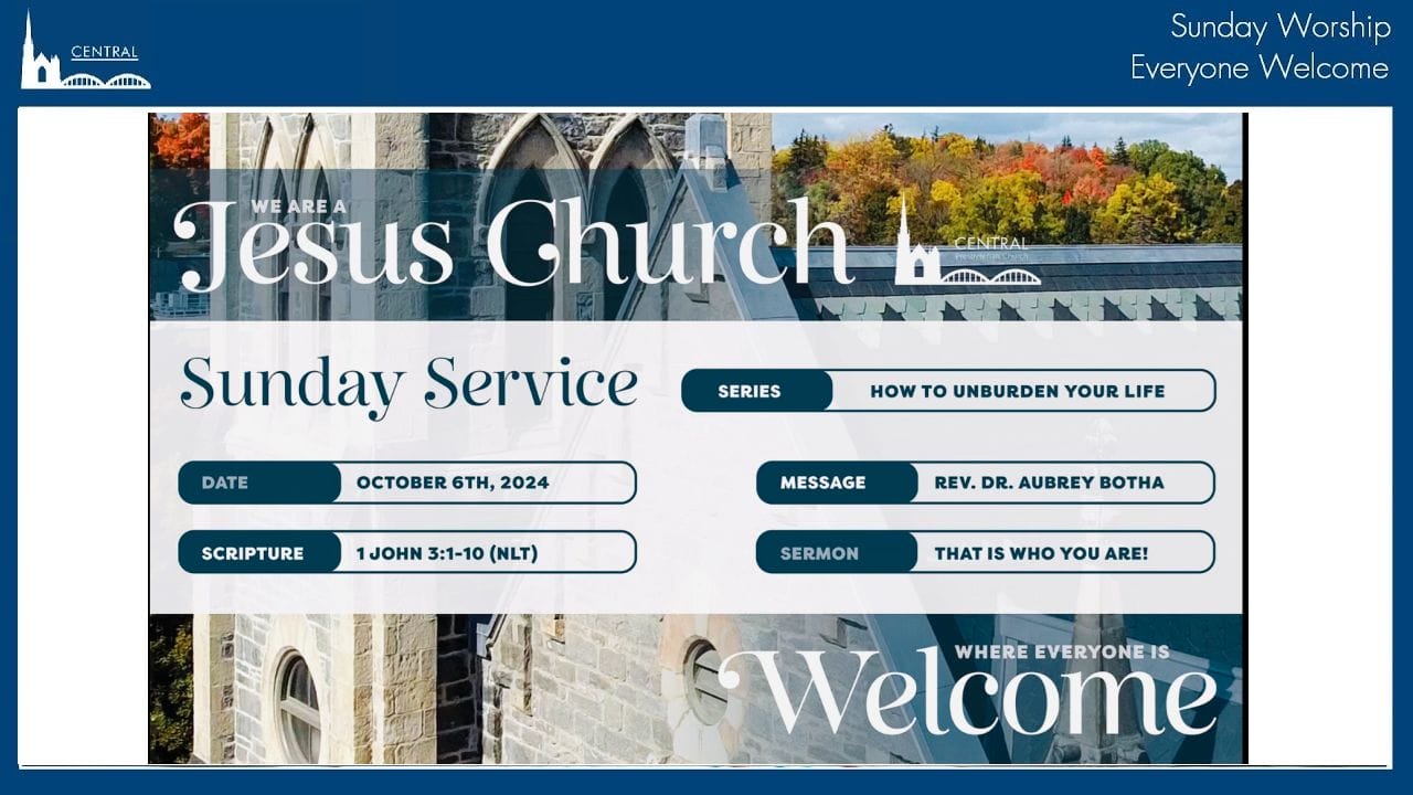 This week is World Communion Sunday. If you are joining us online, you are welcome to participate in our communion. Our message this week, part of our ongoing series “Unburden Yourself”, examines the question of who we are made to be. Our passage this week is 1 John 3:1-10 (NLT)