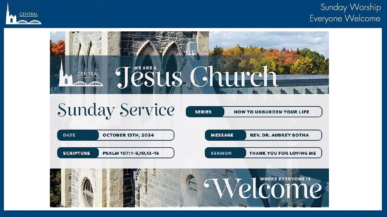 Happy Thanksgiving. This week, we continue our series, “Unburden Yourself” as we thank God for his unfailing love. Our passage this week comes from the Psalms, Psalm 107:1-10,13-15